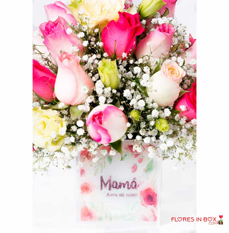 Arreflo formado por una base que es una vela cubierta por exoticas flores como rosas, lisiantus y follage que lo vuelven en un detalle especial