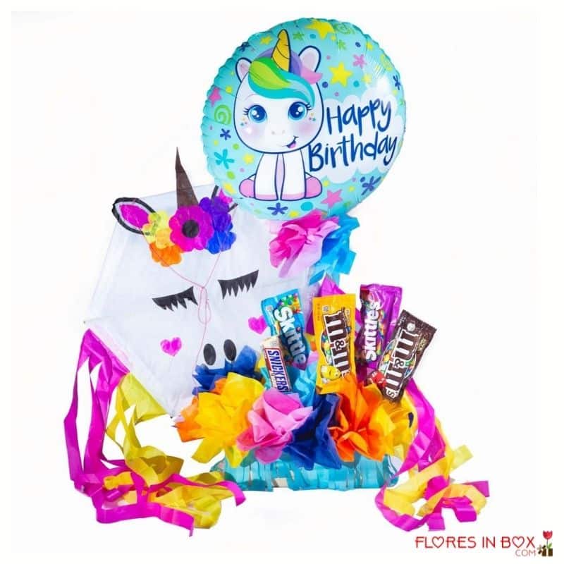 Hermoso arreglo de globos para cumpleaños, especial de la temporada. Incluye chocolates y Skittles.
