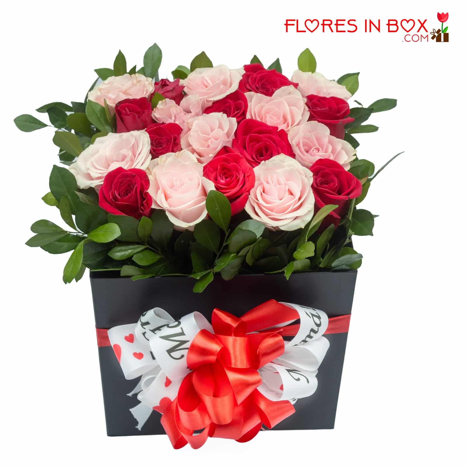 Elgante caja con convinanción de rosas rojas y rosas rosadas